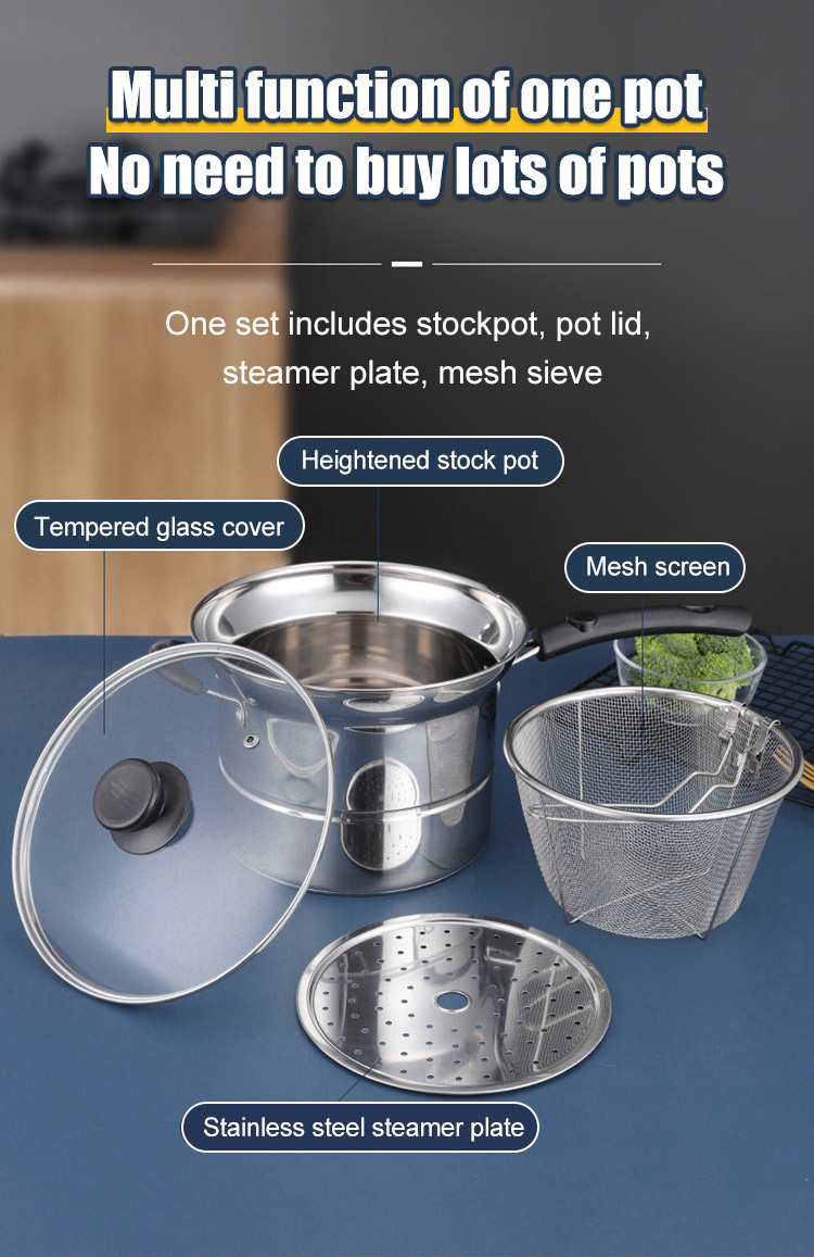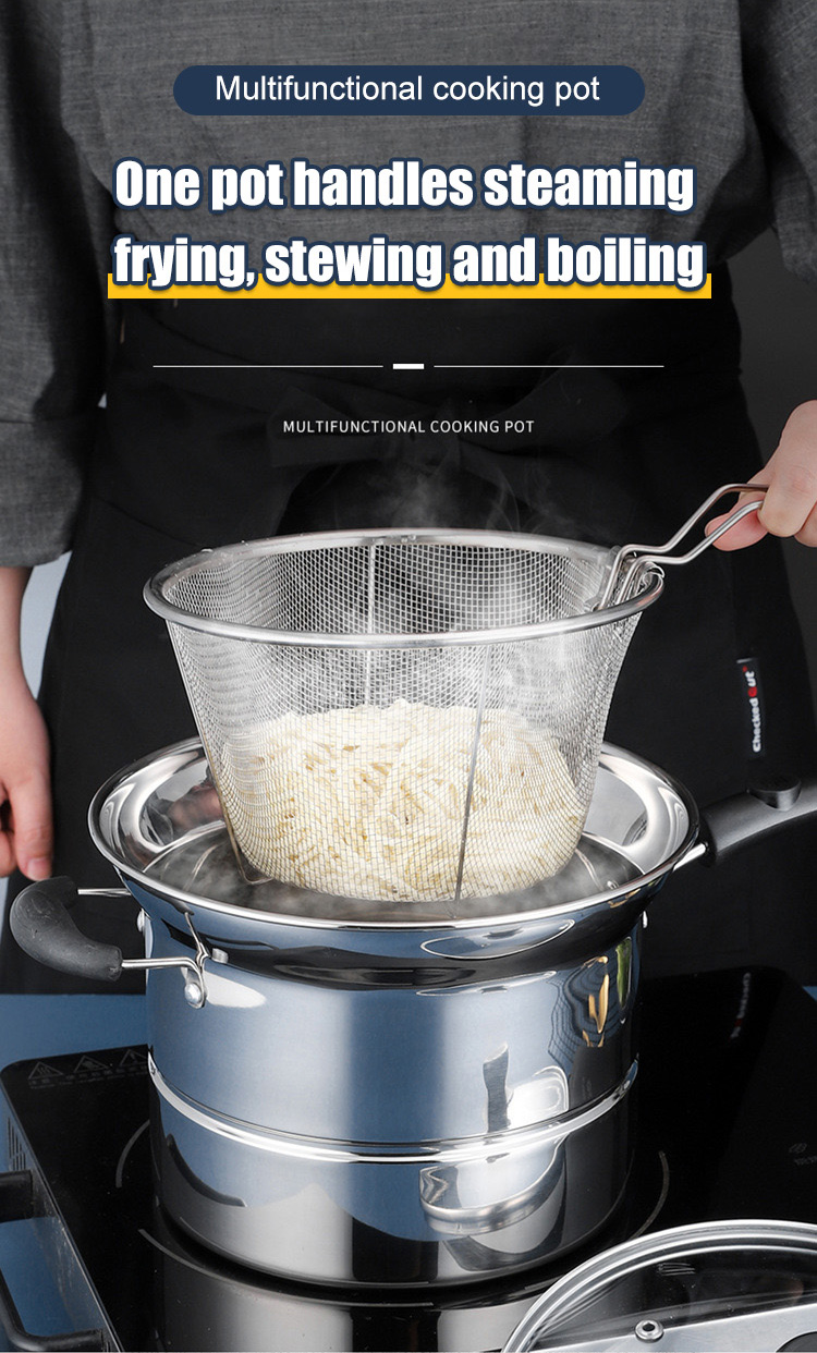 Multi-purpose cooking pot for steaming, frying, braising and simmering [buy one and get four]