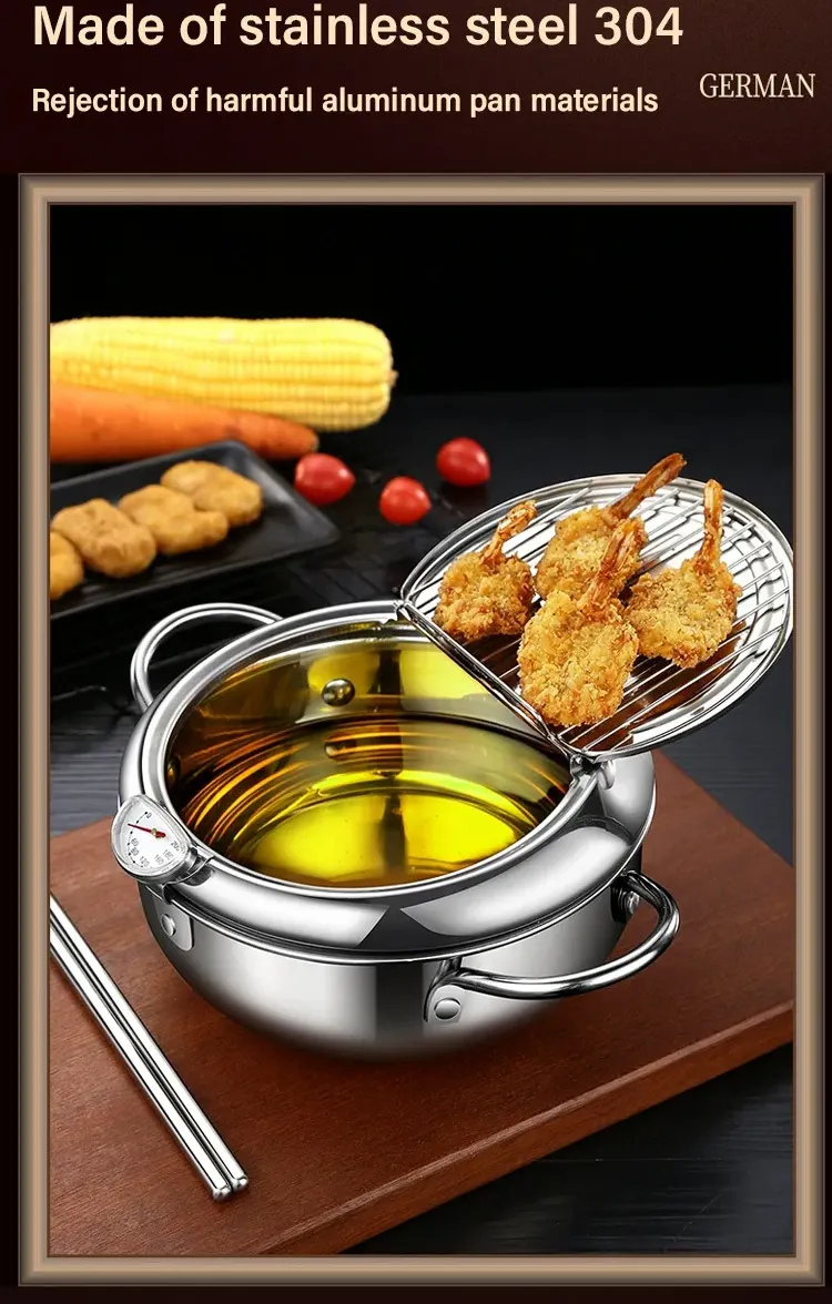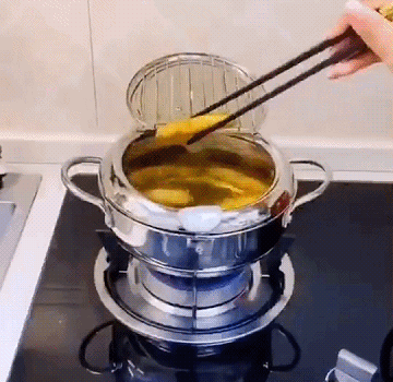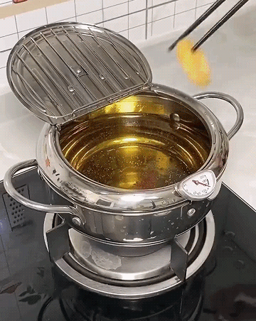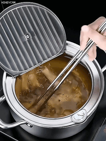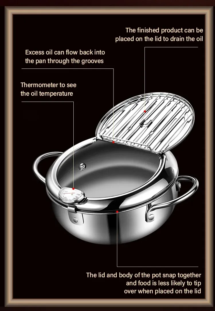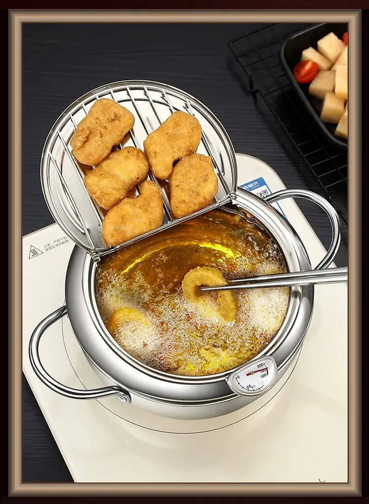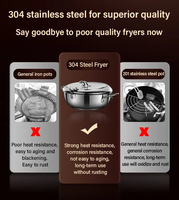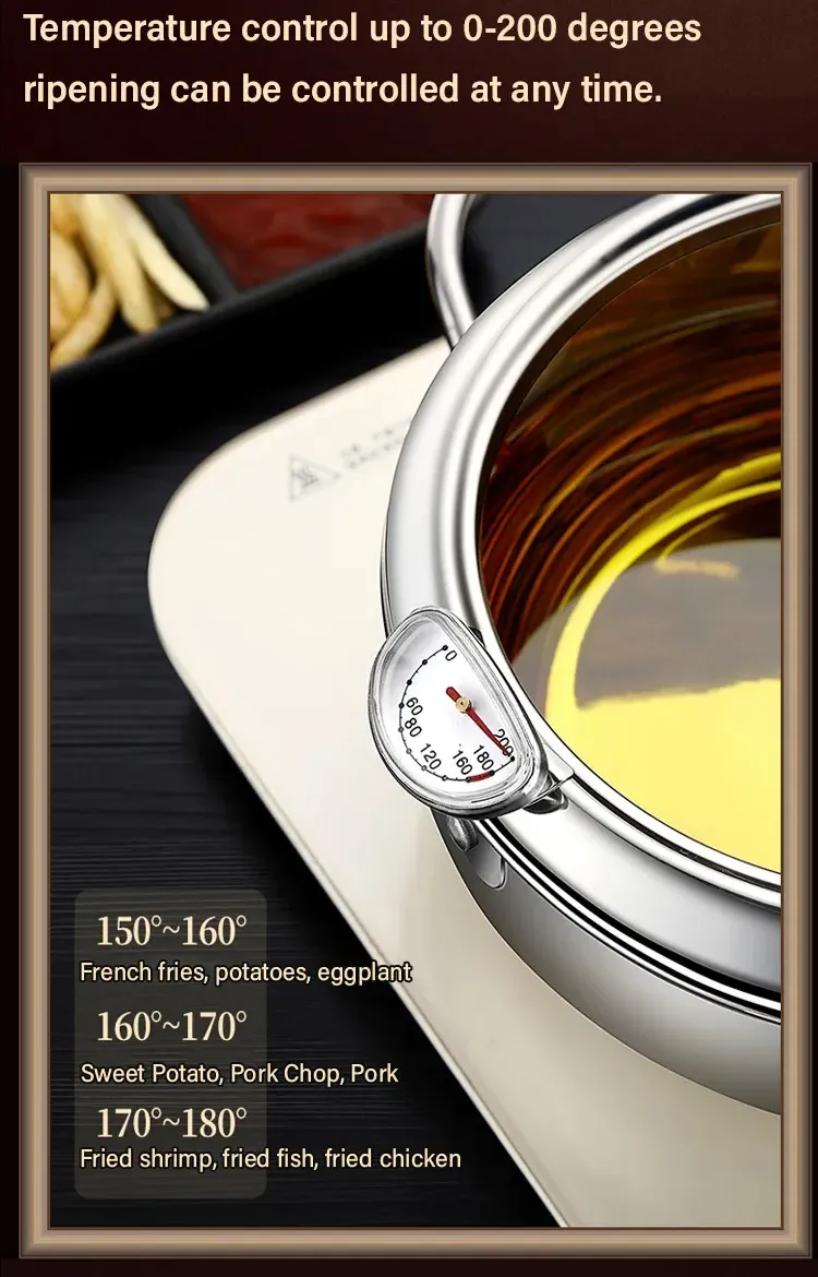 Stainless steel deep fryer with oil-saving and splash-proof features